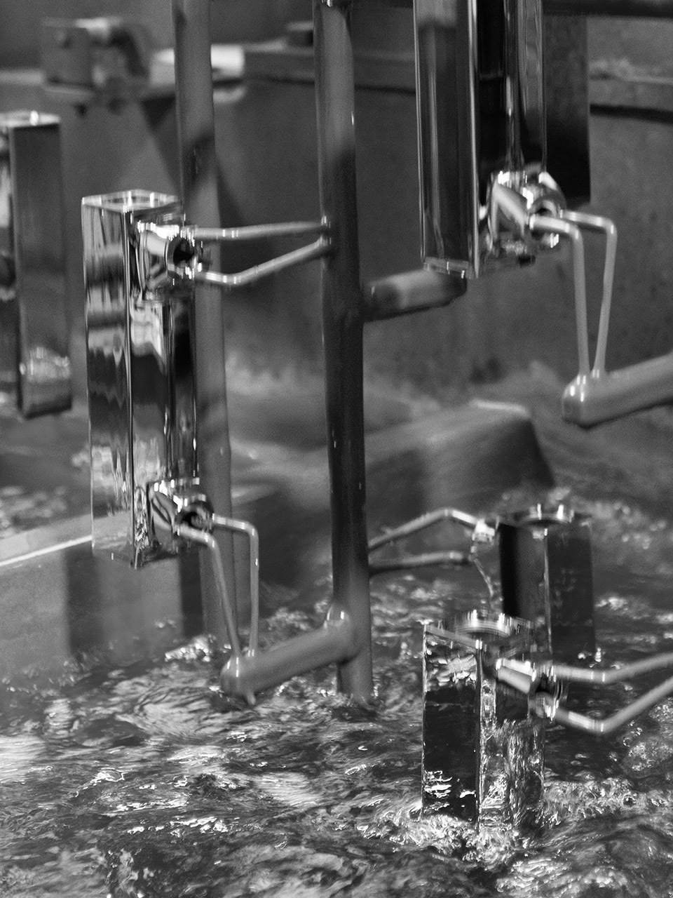 Odată lustruite, piesele sunt gata pentru faza de cromare, ceea ce conferă mixerelor noastre stratul protector superficial de grosime mare și strălucirea lor.