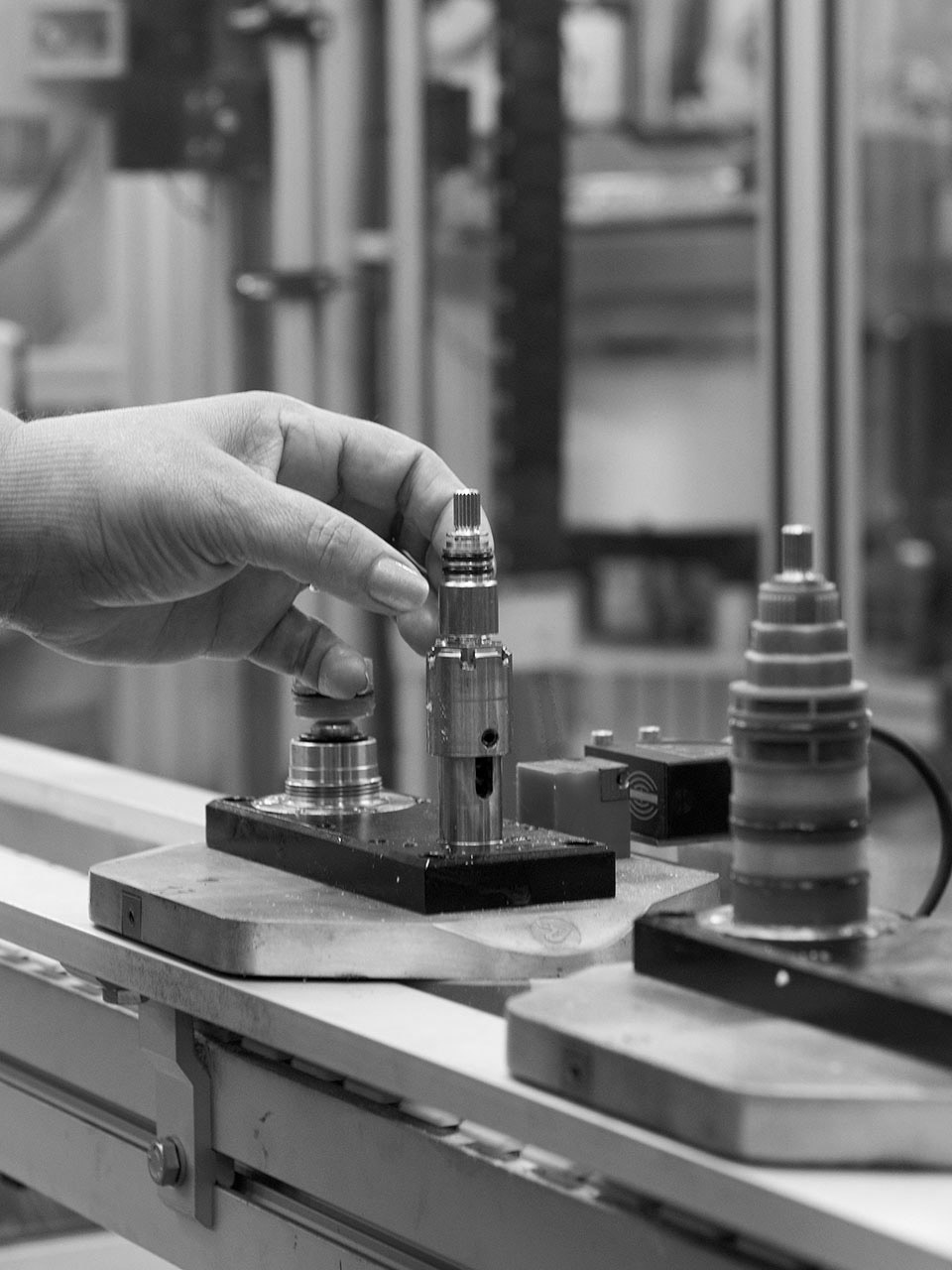 Asamblarea și testarea unică a tuturor mixerelor termostatice se efectuează pe linii automate integrate, care garantează precizie și fiabilitate prin verificarea performanței fiecărei piese.